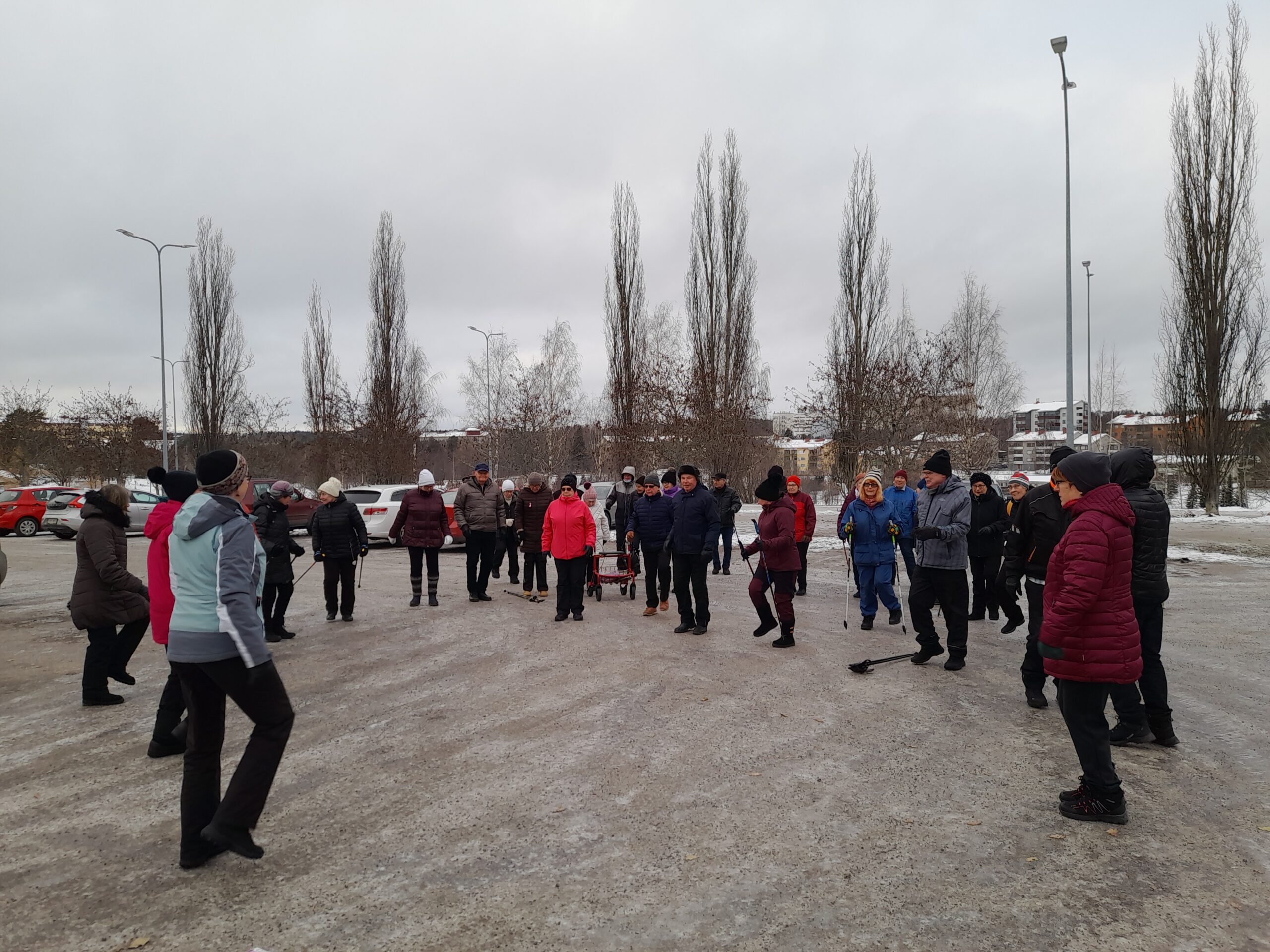 Ulkoilutapahtumaa vietettiin reippaissa merkeissä. Tapio Rautavaaran kenttä kierrettiin ympäri ainakin yhden kerran. Päälle juotiin kahveet ja juteltiin mukavia.